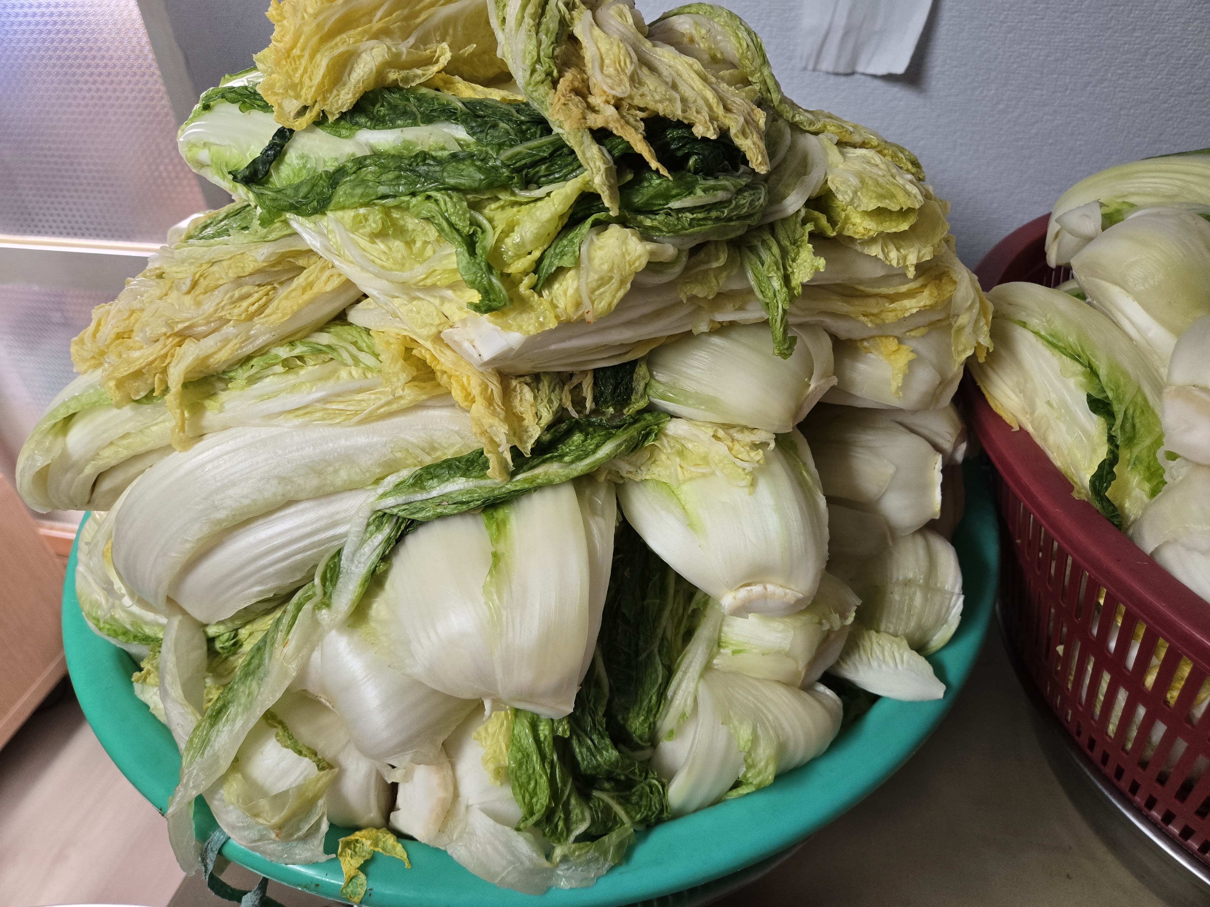 절임배추를 한번 씻어 건져놓고